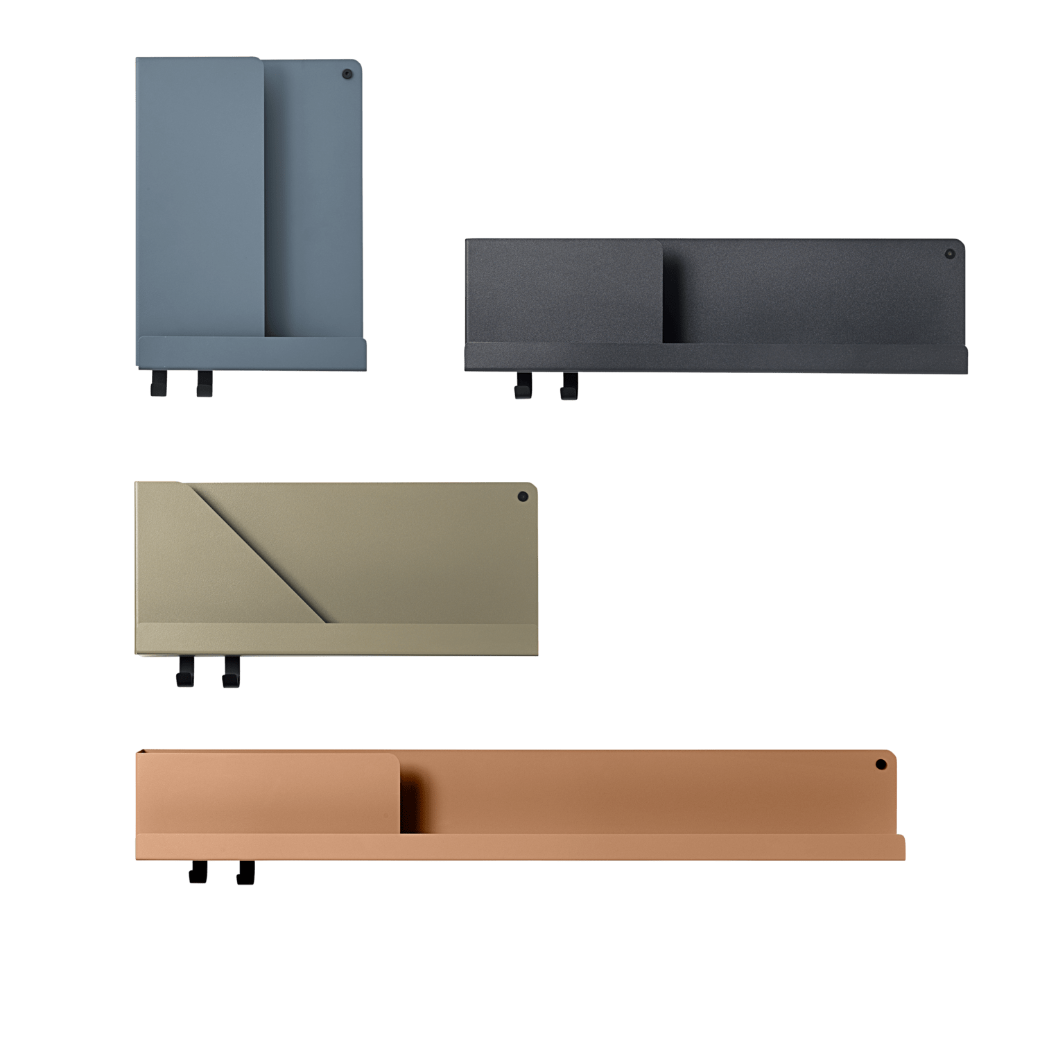 Półki Folded naśladujące wygląd złożonego papieru. ale ukształtowany w metalu. mają nowoczesny. funkcjonalny charakter. Półki wyposażone są w dwa haczyki