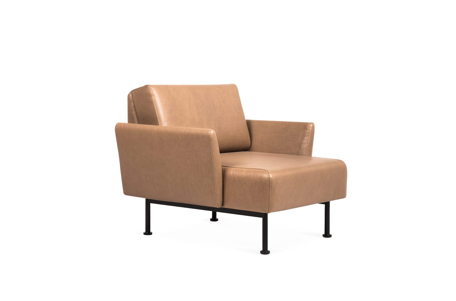 Cechą charakterystyczną Muse jest zszycie poduszki oparcia i podłokietników z korpusem mebla – dzięki temu bryła wygląda spójnie. a linia szwów dyskretnie porządkuje formę. Fotel dostępny jest na nogach dębowych lub stalowych oraz w wersji ze stalową ramą podłokietników obszytych czarną skórą. co pozwala przejść od bardziej „domowego” do wyraźnie designerskiego. graficznego efektu.