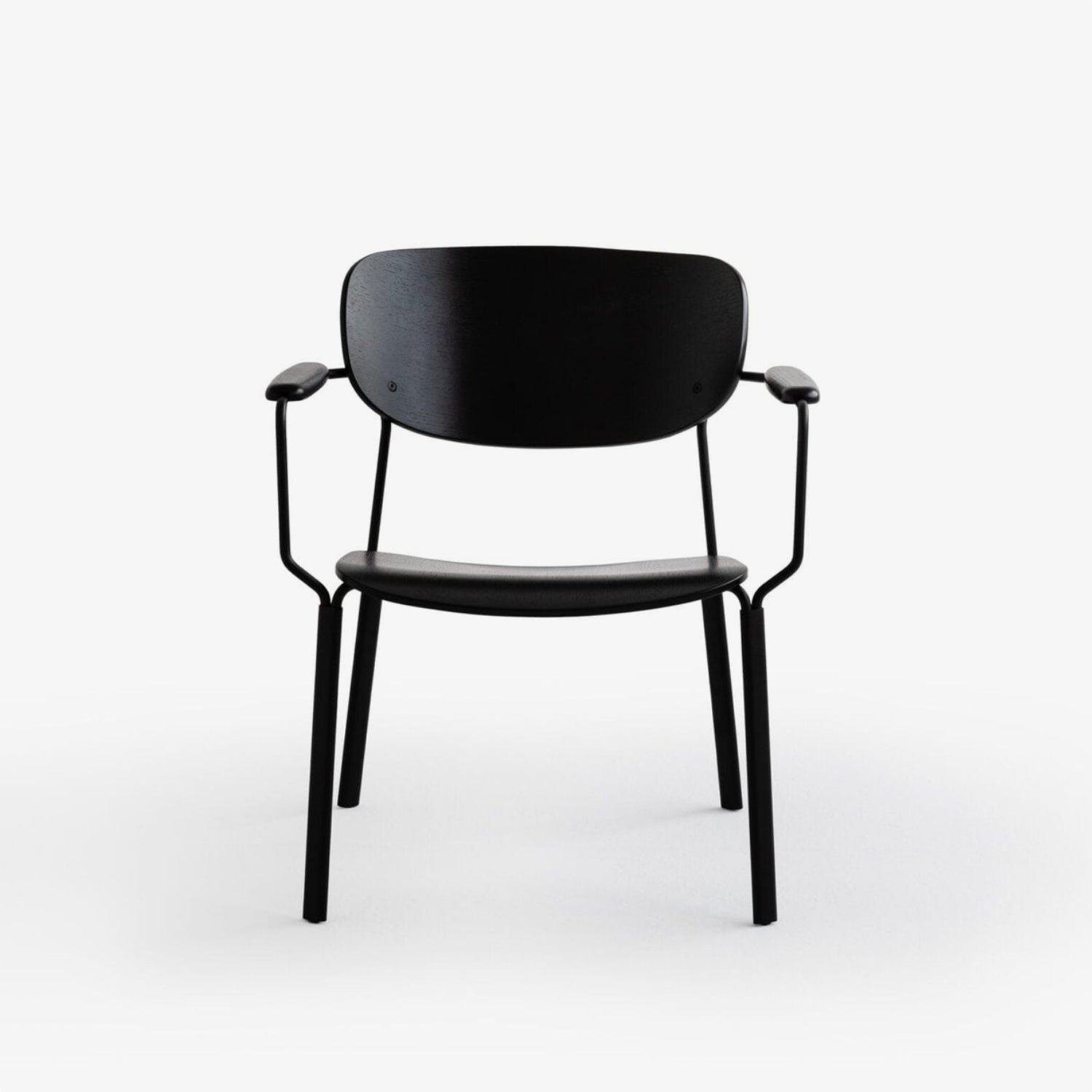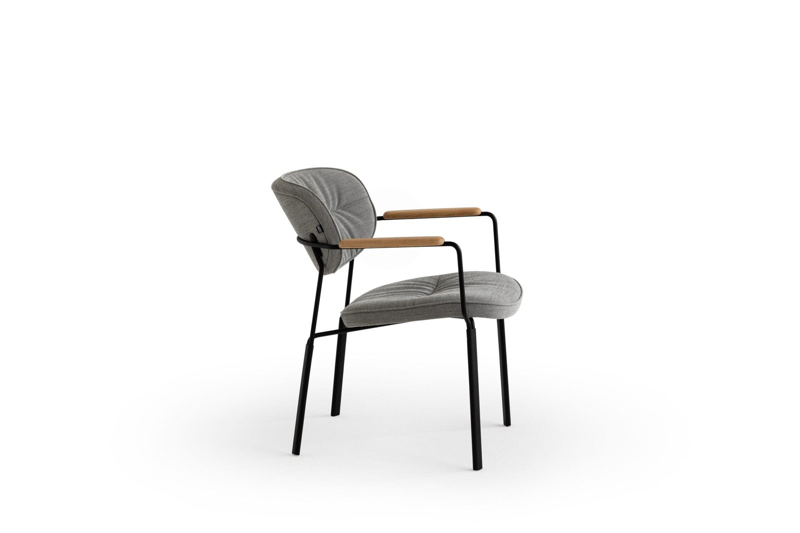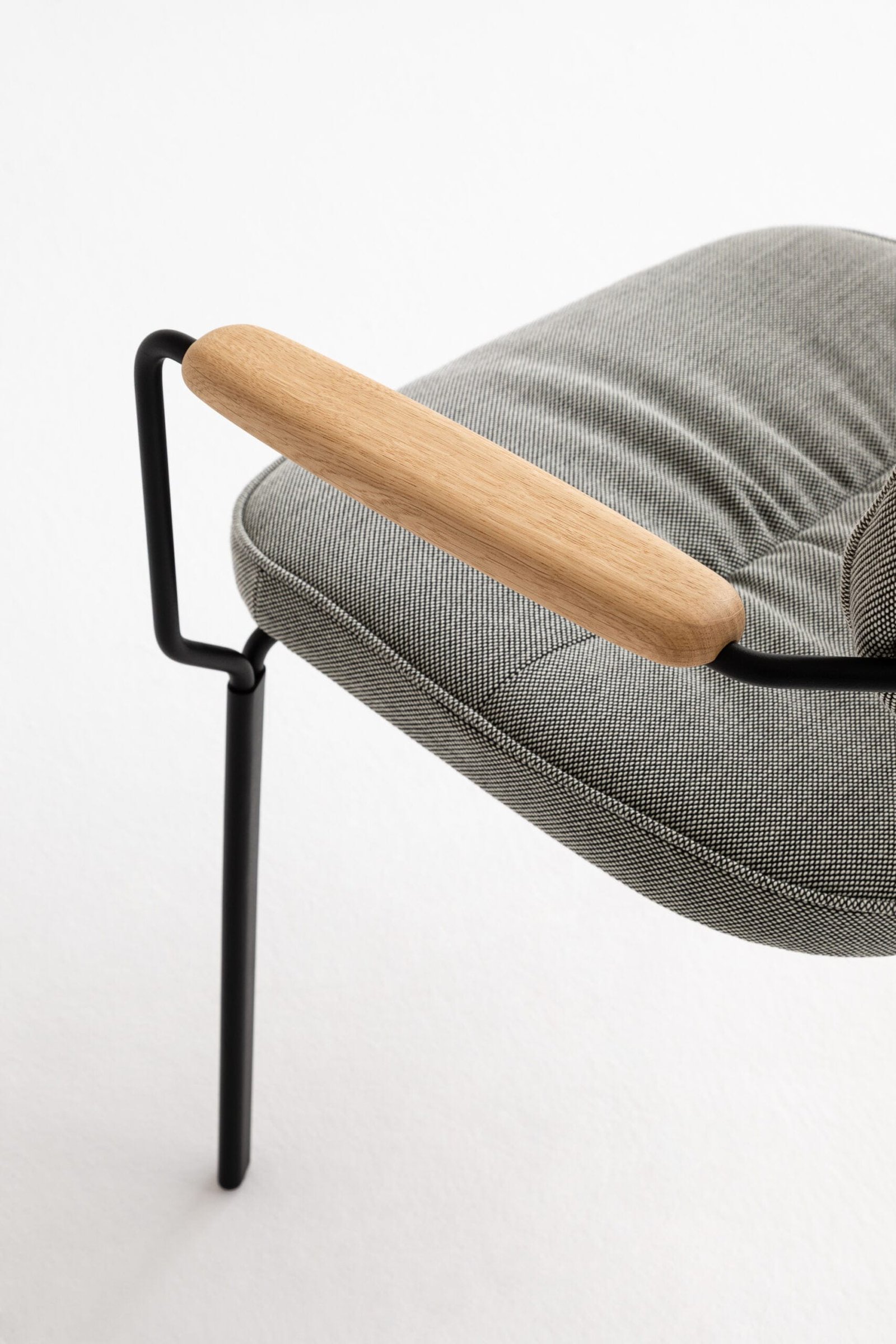 Kolekcja obejmuje krzesło i fotel w dwóch podstawowych wersjach: z kubełkiem ze sklejki bukowej wykończonej okleiną dębową oraz w wersji tapicerowanej. z pianką poliuretanową pod tkaniną lub skórą. We wszystkich wariantach zastosowano dębowe podłokietniki. zawsze w kolorze dopasowanym do wybarwienia okleiny. co podkreśla spójność projektu.