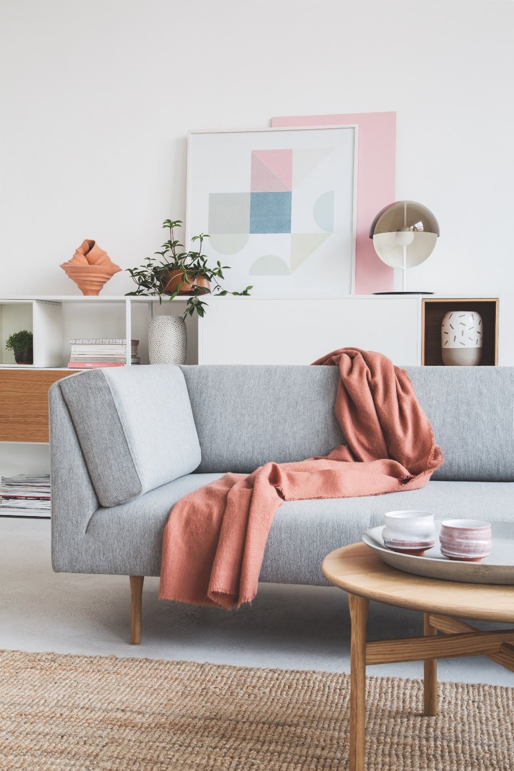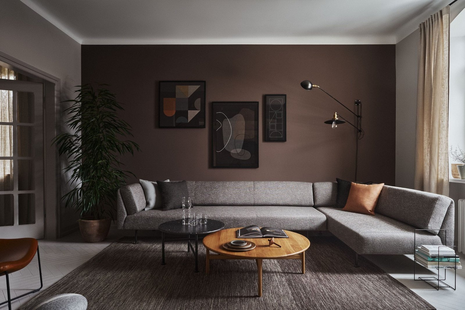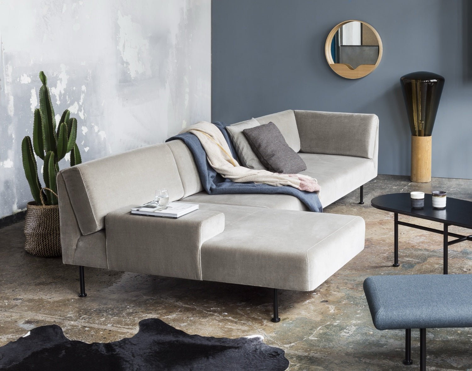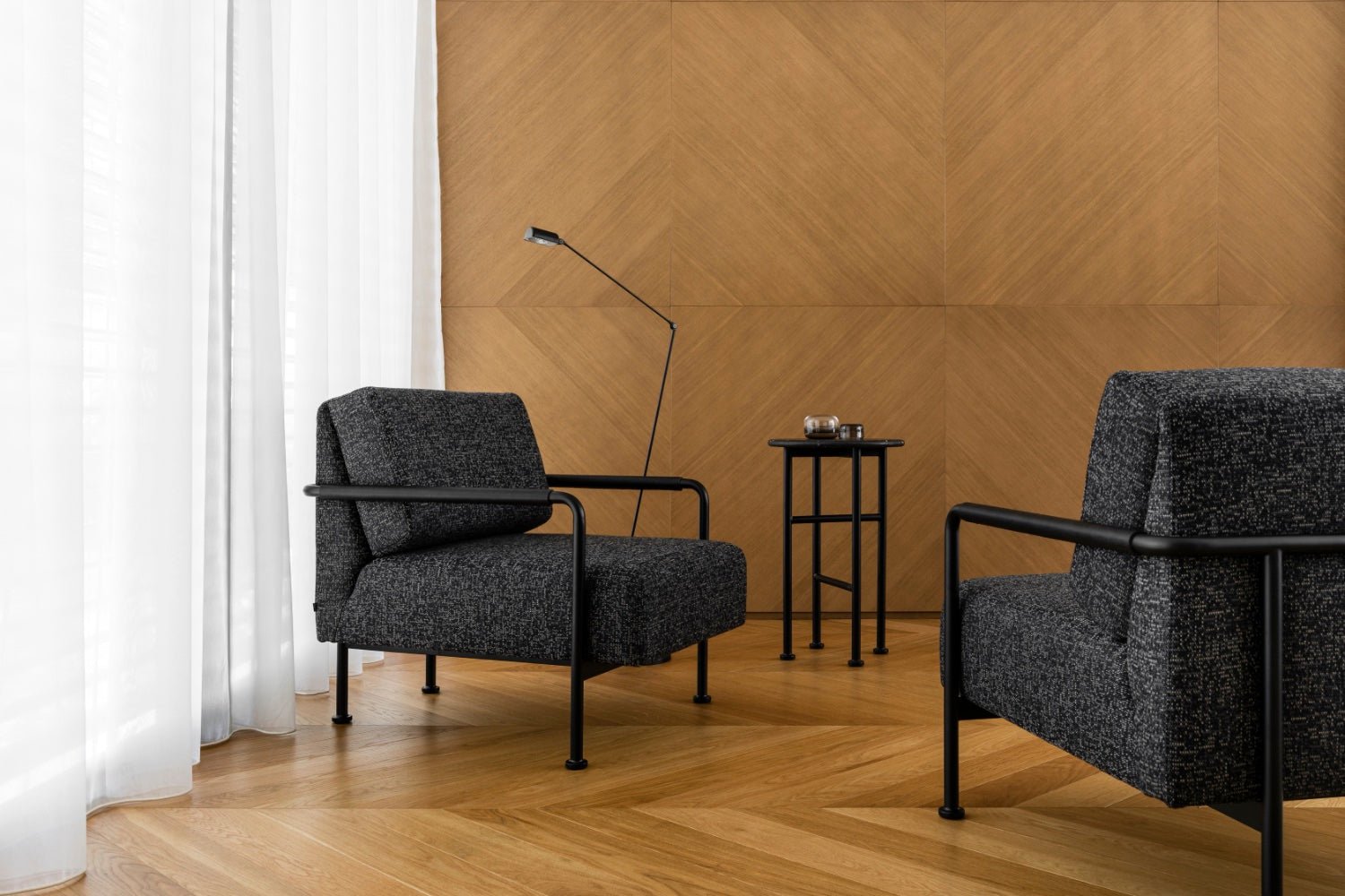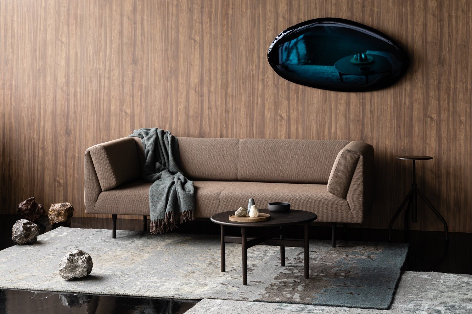 Wypełnienie ze standardowych i wysokoelastycznych pianek poliuretanowych oraz elastyczne pasy tapicerskie zapewniają komfort przy codziennym użytkowaniu. a wybór nóg – dębowych w ciepłym. naturalnym wybarwieniu lub stalowych lakierowanych na czarno – pozwala dopasować sofę Muse do wnętrz od skandynawskich po bardziej minimalistyczne. graficzne aranżacje.