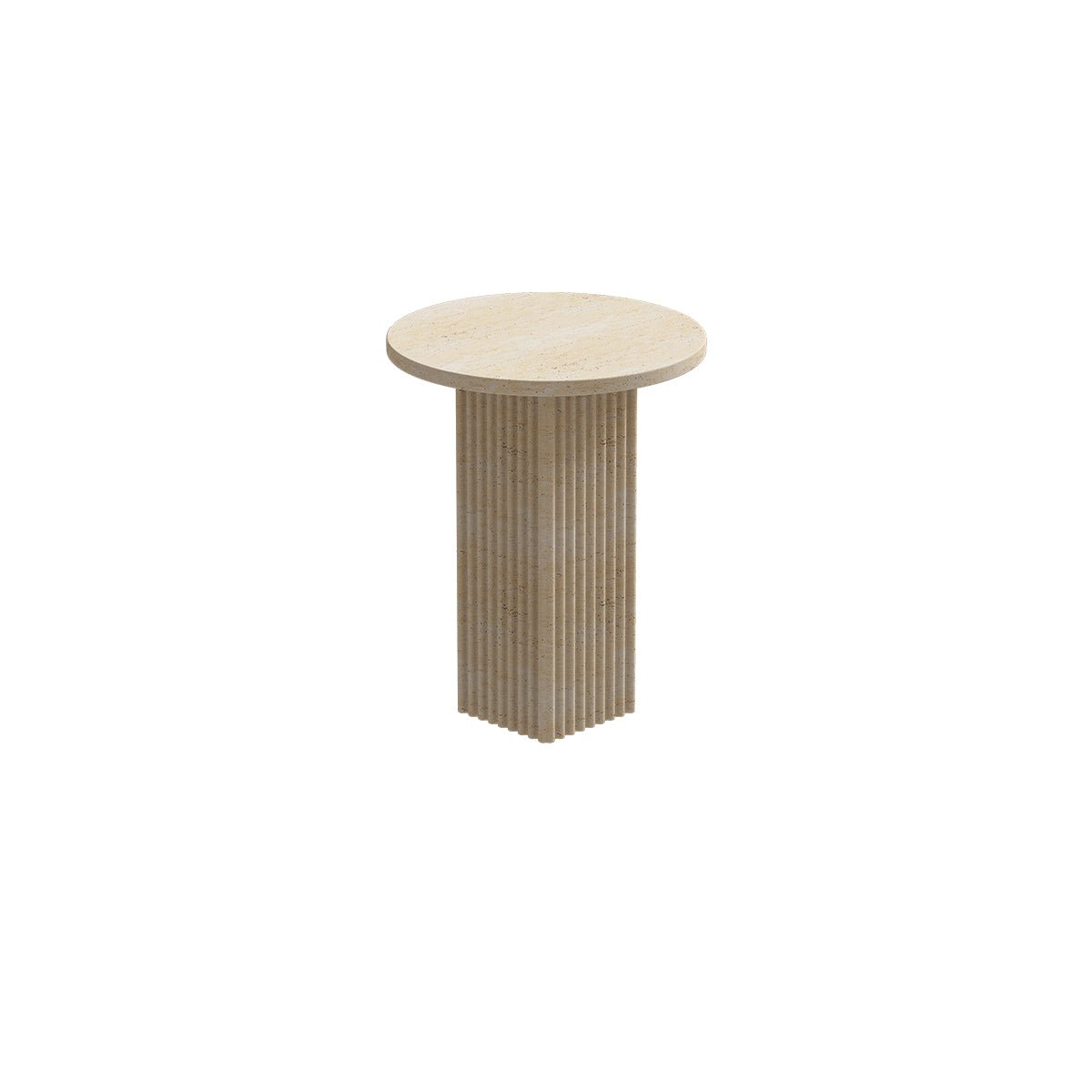 Stolik w całości wykonany jest z trawertynu – naturalnego kamienia. który sam w sobie jest dziełem sztuki. Każda płyta jest unikalna. posiada niepowtarzalny wzór żył i odcień . a także naturalną powierzchnię z niewielkimi porami i niedoskonałościami.