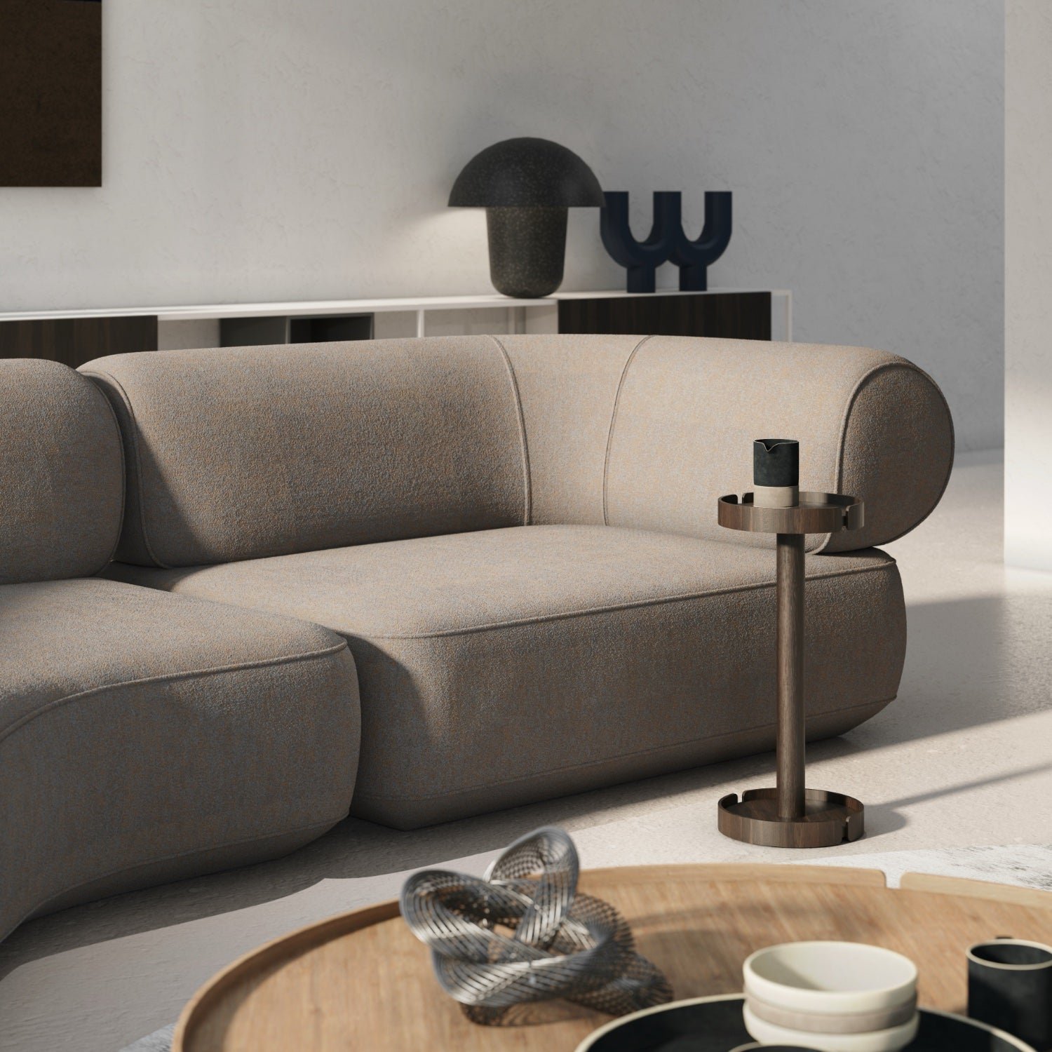 Kolekcja obejmuje aż sześć rozmiarów stolików – okrągłych i prostokątnych – wykonanych z dębowej sklejki fornirowanej oraz litego drewna. Dzięki temu Serif może pełnić rolę stolika kawowego w salonie. nocnego przy łóżku. pomocniczego przy fotelu czy „stołu do zadań specjalnych” w strefach wejściowych. hotelowych lobby lub gabinetach. Uniwersalny. ale wyrazisty charakter sprawia. że to mebel łatwy do wkomponowania w różne stylistyki – od współczesnego minimalizmu po wnętrza inspirowane klasyką.