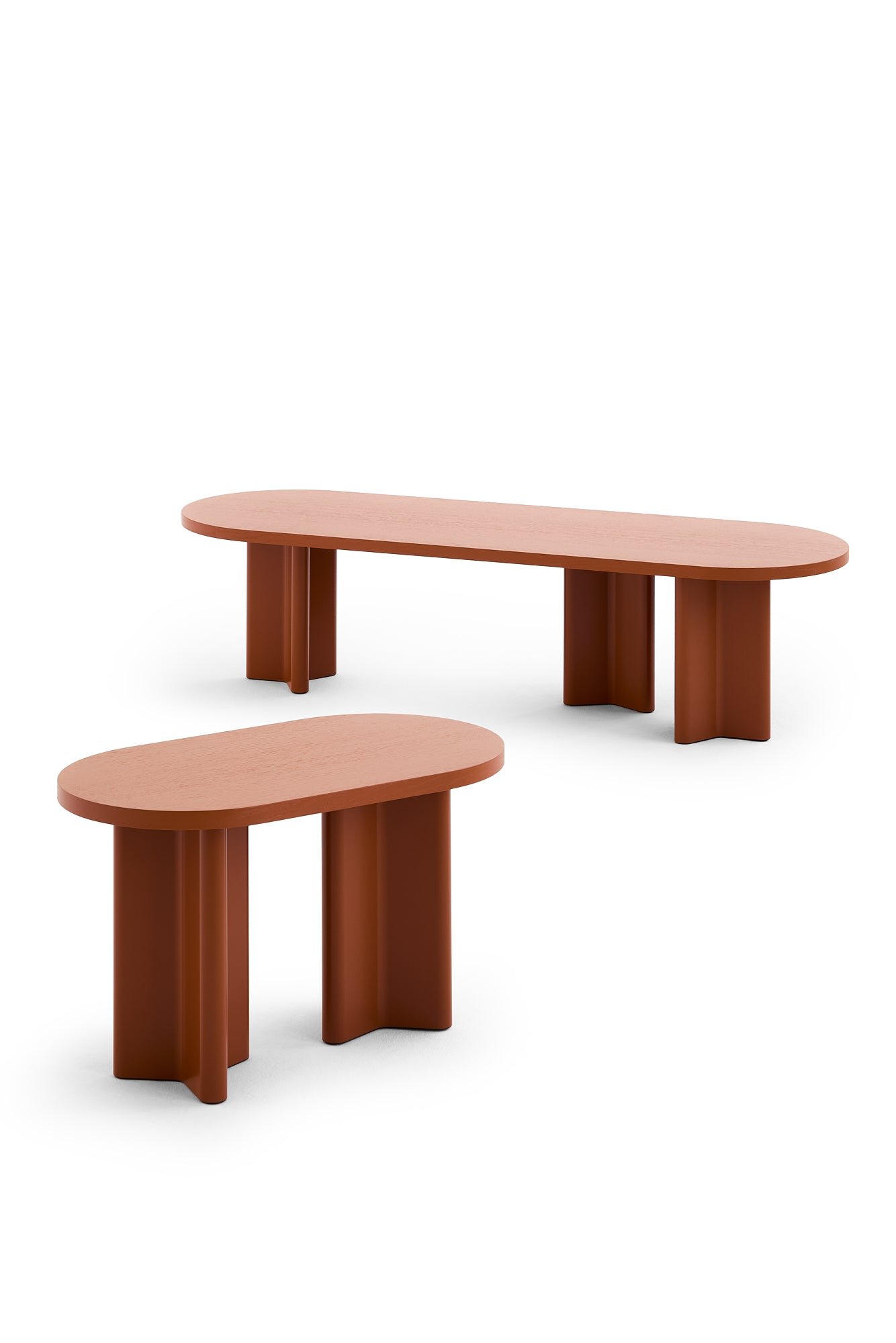 Zróżnicowane formaty – od małego. kubikowego stolika bocznego 32 × 32 cm. przez niższe. kwadratowe stoły kawowe. aż po wydłużone formy przypominające ławy – pozwalają dopasować Cactus do roli stolika przy sofie. stolika kawowego w centrum salonu. pomocniczego przy fotelu lub niskiej konsoli w strefie wejścia. Wykończenie blatów płytą melaminowaną. lakierowaną płytą MDF. okleiną dębową lub tworzywem z recyklingu umożliwia dopasowanie charakteru stolika do wnętrz od minimalistycznych po bardziej wyraziste.
