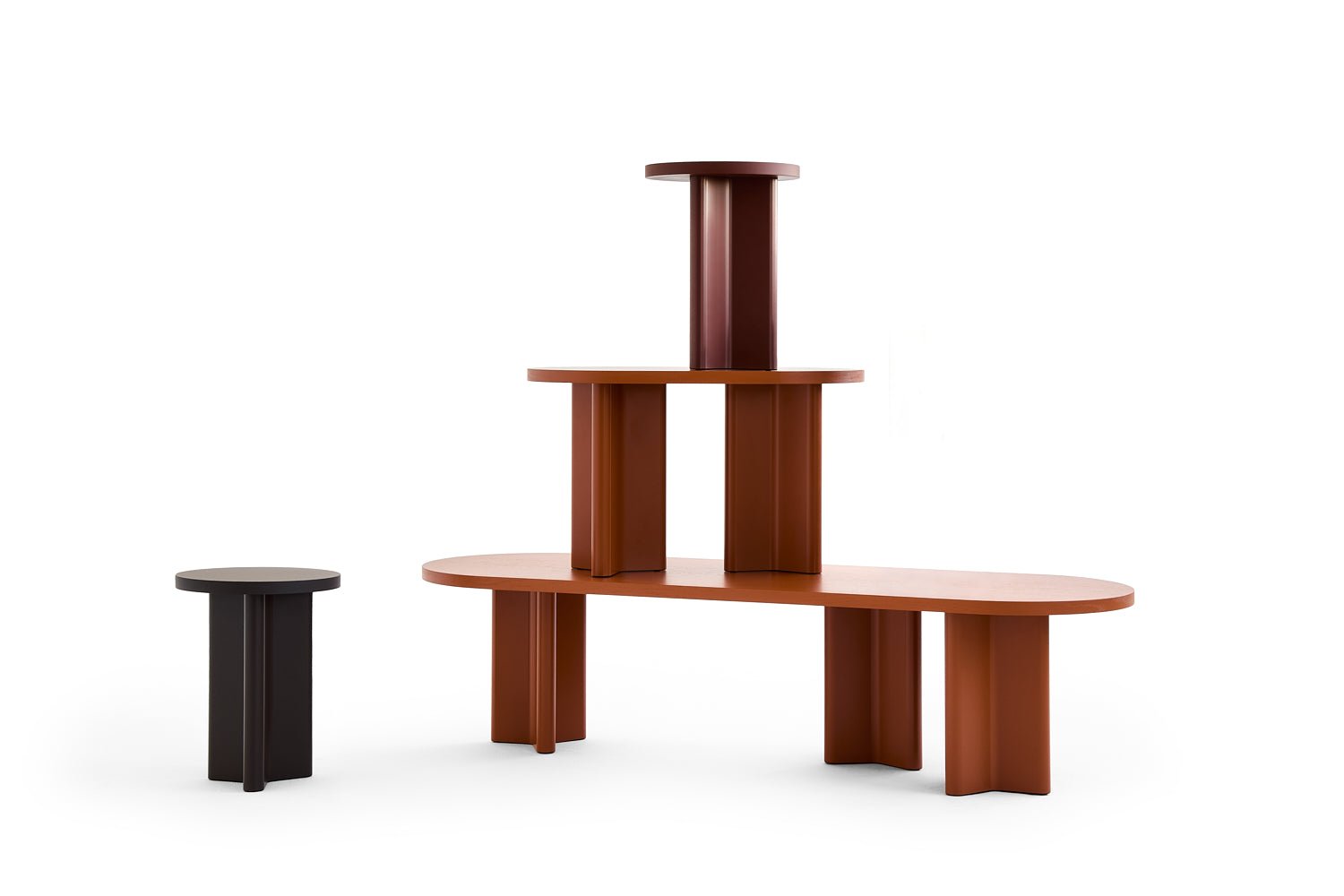Stoliki Cactus marki Noti to seria niskich i pomocniczych stolików. w których rzeźbiarska forma podstawy spotyka się z lekką. graficzną linią blatów. Trójramienne. aluminiowe podstawy inspirowane kształtem kaktusa Euphorbia trigona tworzą dynamiczną. ale stabilną konstrukcję. dzięki czemu stoliki Cactus są jednocześnie dekoracyjne i funkcjonalne.