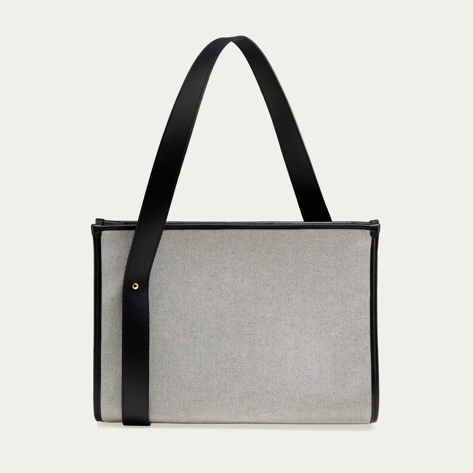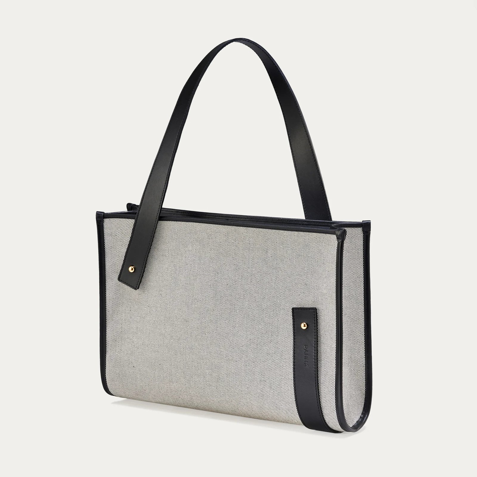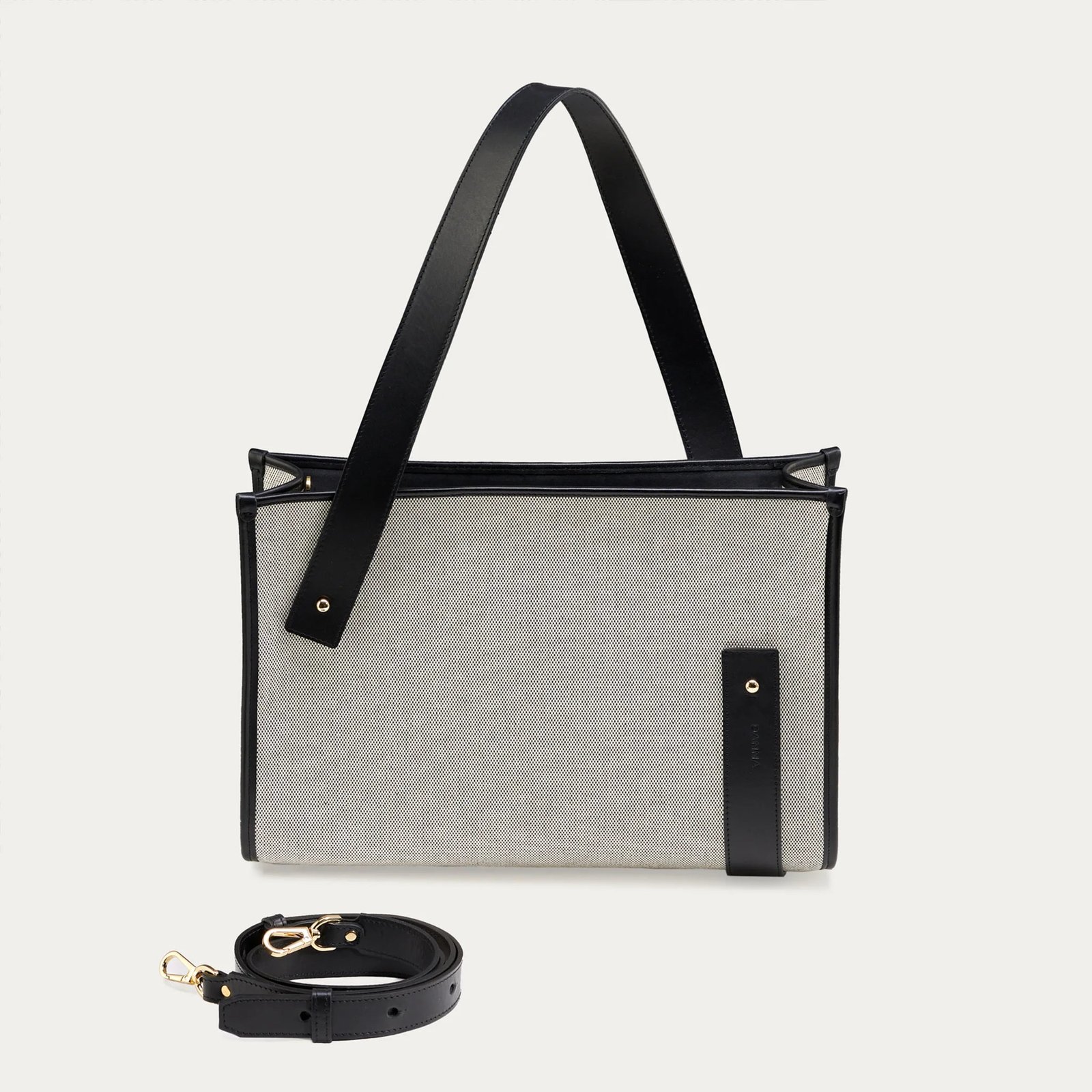 Torba wyróżnia się niezwykłą prostotą i elegancją. powstała z jednego. miękkiego kawałka impregnowanego. płótna (premium). który tworzy jej podstawową formę. Całość jest subtelnie wykończona kawałkiem paska. który owijany jest wokół niej. pełniąc funkcję rączki. Ten minimalistyczny. ale efektowny detal nie tylko nadaje jej nowoczesny charakter. ale także zapewnia praktyczny uchwyt. Torba posiada również regulowany pasek. który umożliwia noszenie jej na ramieniu.