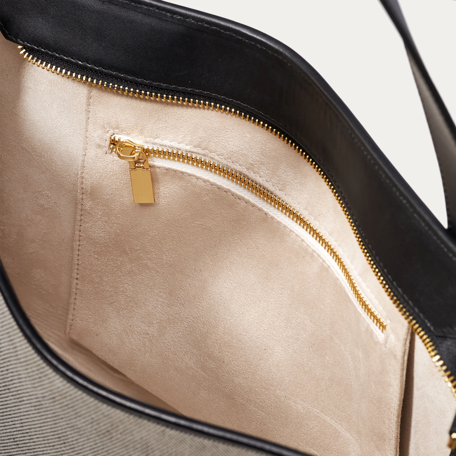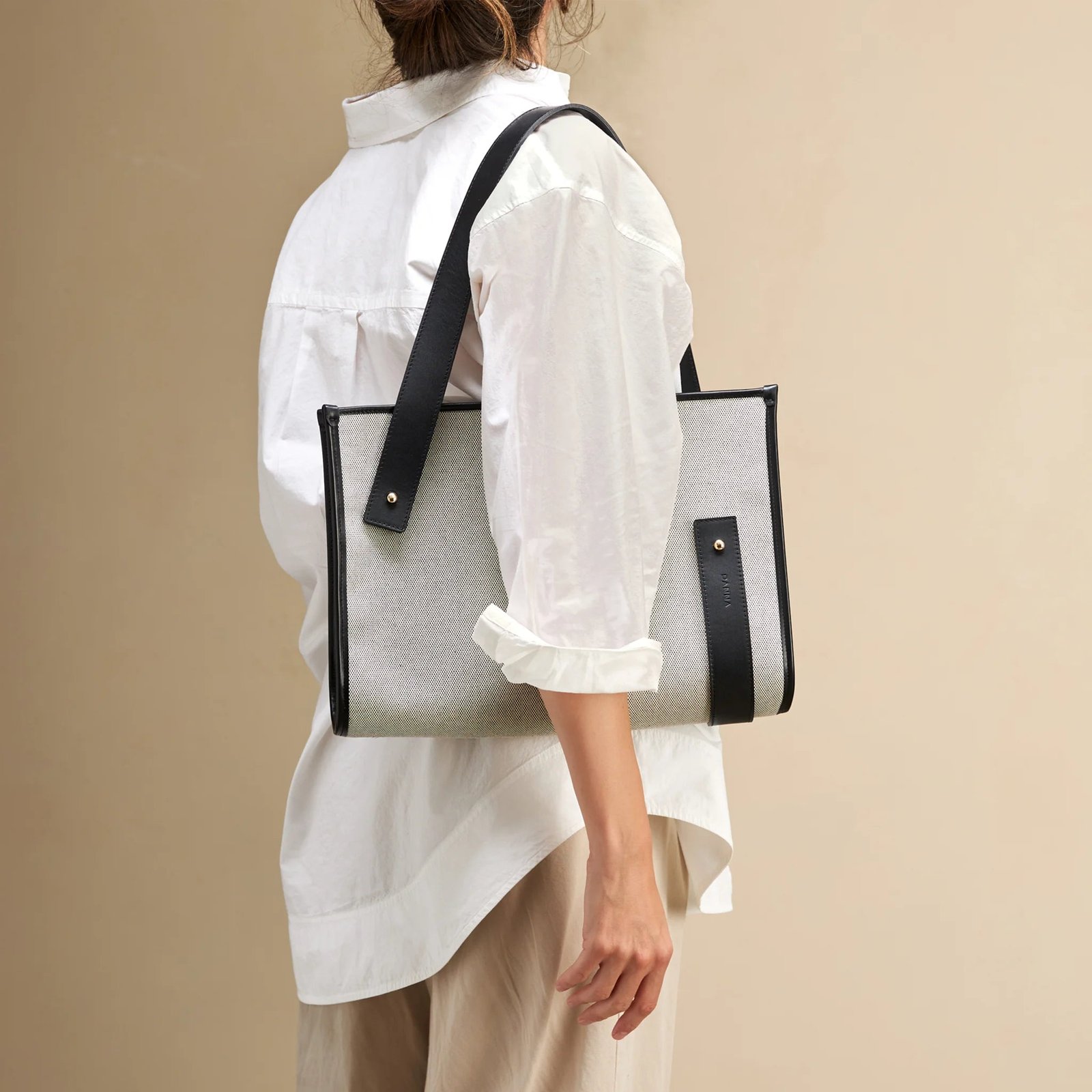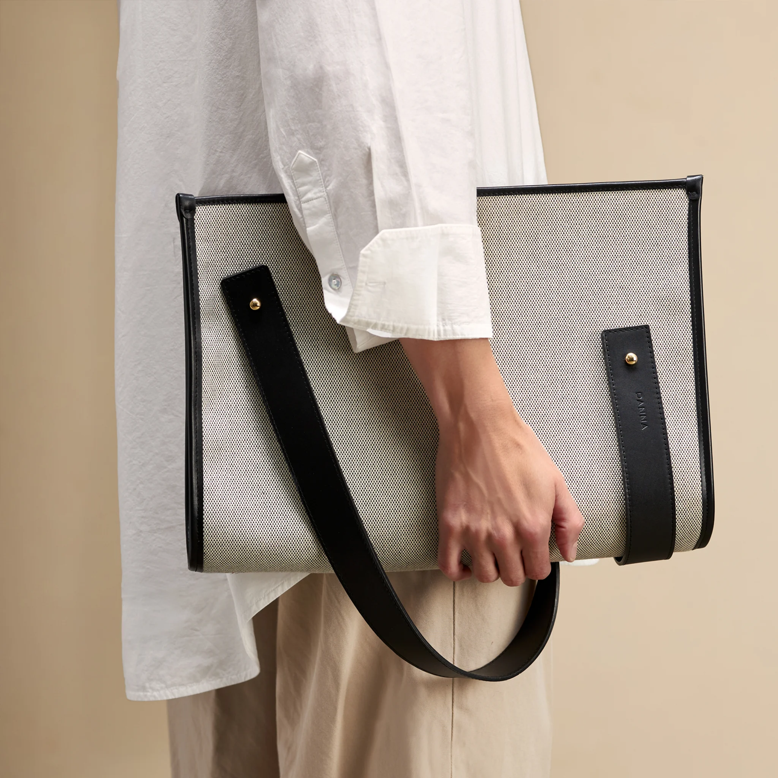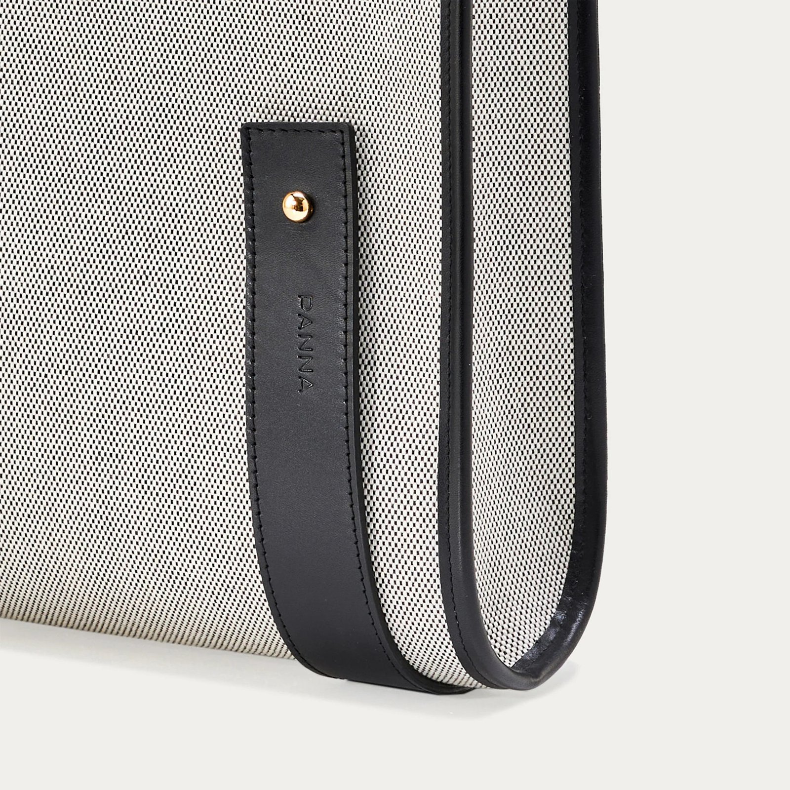 Torba wyróżnia się niezwykłą prostotą i elegancją. powstała z jednego. miękkiego kawałka impregnowanego. płótna (premium). który tworzy jej podstawową formę. Całość jest subtelnie wykończona kawałkiem paska. który owijany jest wokół niej. pełniąc funkcję rączki. Ten minimalistyczny. ale efektowny detal nie tylko nadaje jej nowoczesny charakter. ale także zapewnia praktyczny uchwyt. Torba posiada również regulowany pasek. który umożliwia noszenie jej na ramieniu.