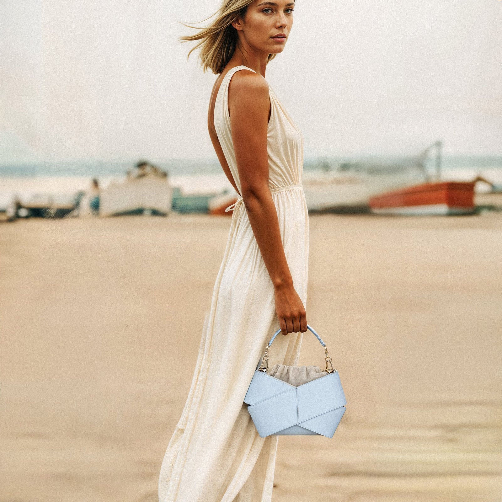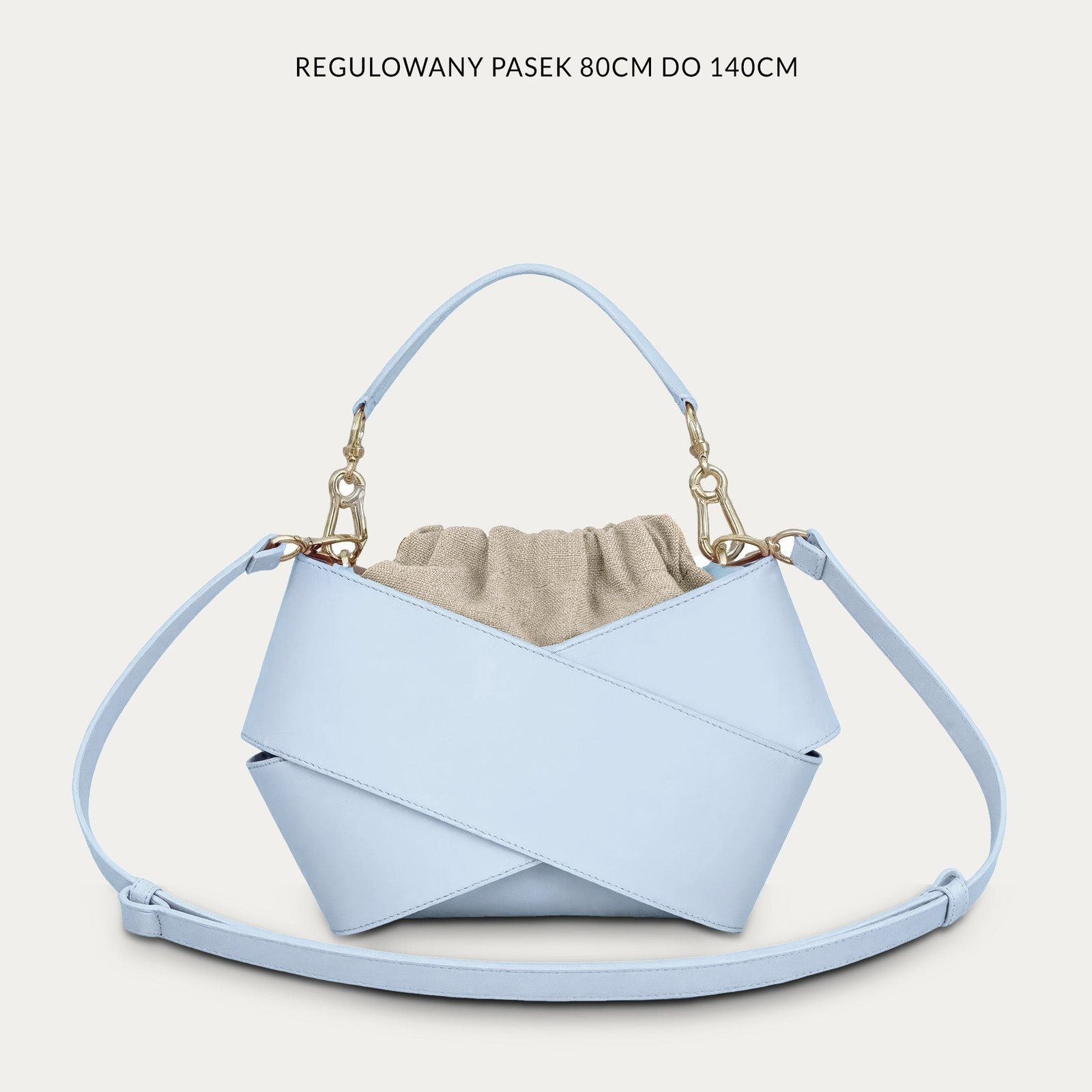 Forma torby. stworzona z dwóch kawałków skóry owiniętych wokół siebie. przyciąga uwagę swoim nowoczesnym wyglądem. W jej wnętrzu znajduje się luzem umieszczony woreczek. który skutecznie zabezpiecza zawartość przed przypadkowym wypadnięciem. Co więcej. woreczek można łatwo wymieniać. co pozwala na personalizację torby i nadanie jej nowego charakteru. Torba wyposażona jest w pasek na ramię. który zapewnia wygodę noszenia. oraz elegancką rączkę ze złotymi okuciami. Jest elegancka ale i praktyczna