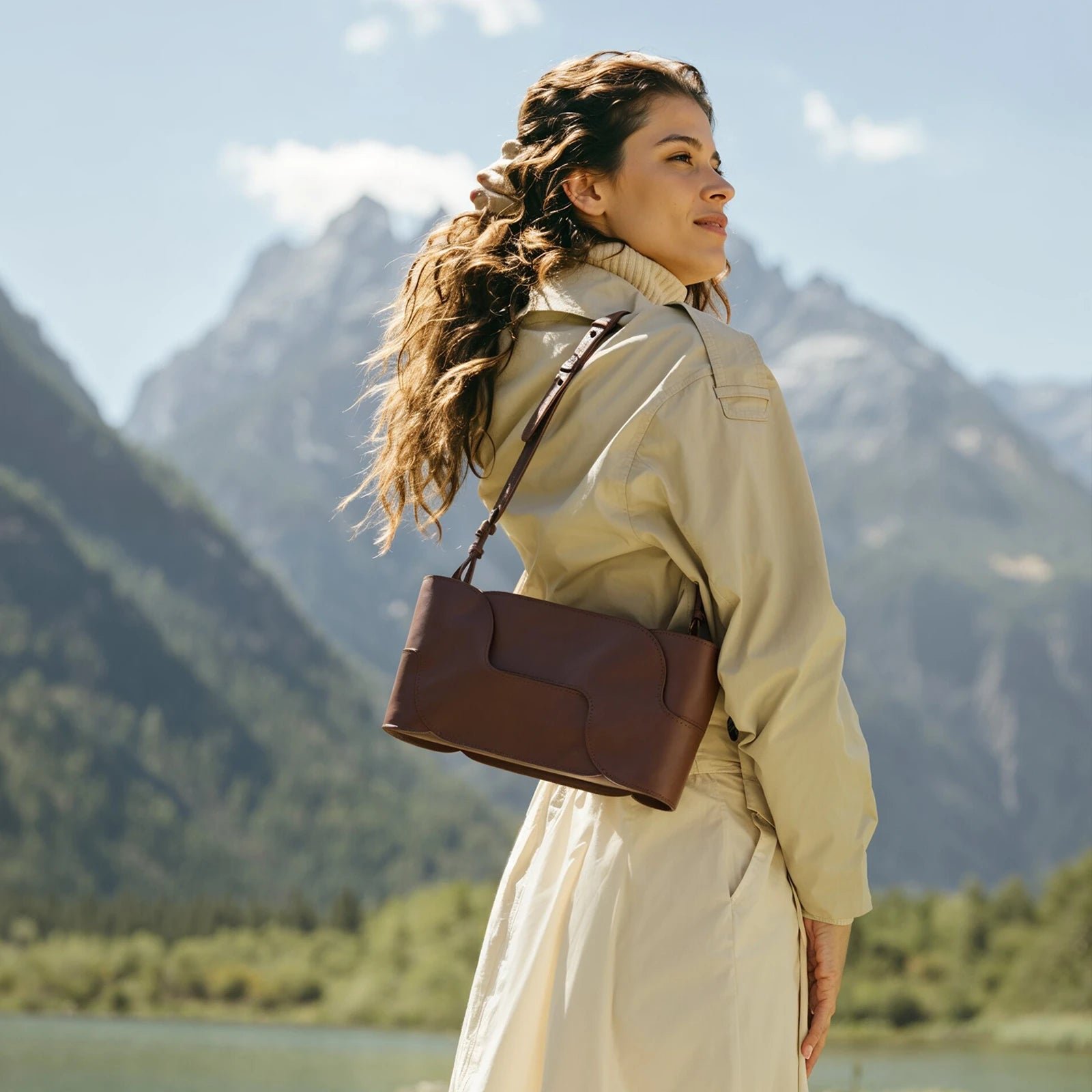 Minimalistyczna. a jednocześnie pełna wyrazu forma sprawia. że torebka świetnie komponuje się zarówno z codziennymi stylizacjami. jak i bardziej eleganckimi zestawami. Regulowany pasek ze złotymi detalami pozwala nosić ją wygodnie na ramieniu lub w dłoni.